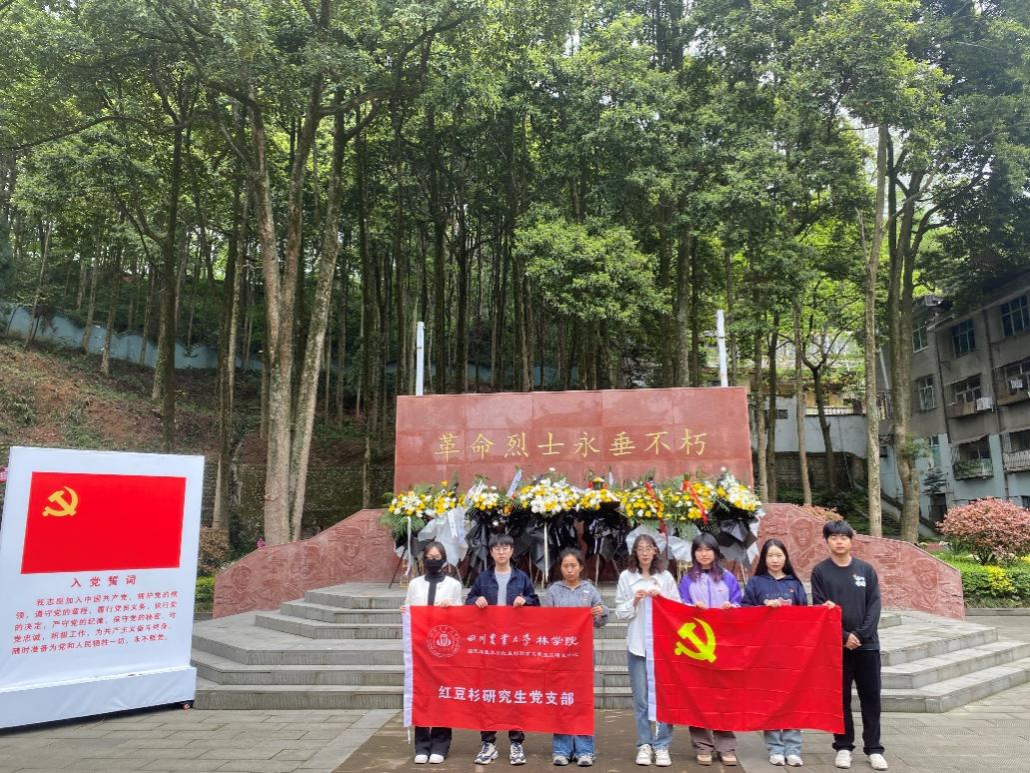 在清明节到来之际,为了缅怀革命先烈,弘扬爱国主义精神,加强爱国主义教育,传承传统文化。林学院红豆杉研究生党支部于4月4日上午9点30分前往都江堰烈士陵园组织开展了“缅怀革命先烈·传承红色精神——清明祭英烈”活动,支部全体党员、入党积极分子瞻仰了烈士墓和武文斌烈士塑像,深切缅怀革命先烈。