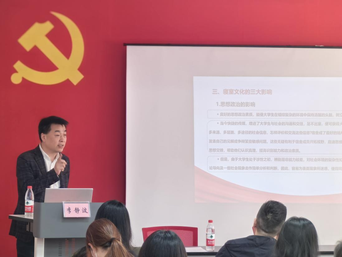 启动仪式结束后,李静波以《一屋不扫何以扫天下》为题开启工作室首堂党课。他从学生寝室现状、构建良好寝室文化的意义以及学生党员应当在寝室文化建设中发挥什么样的作用等方面,讲述了“扫一屋”和“扫天下”的责任和担当。