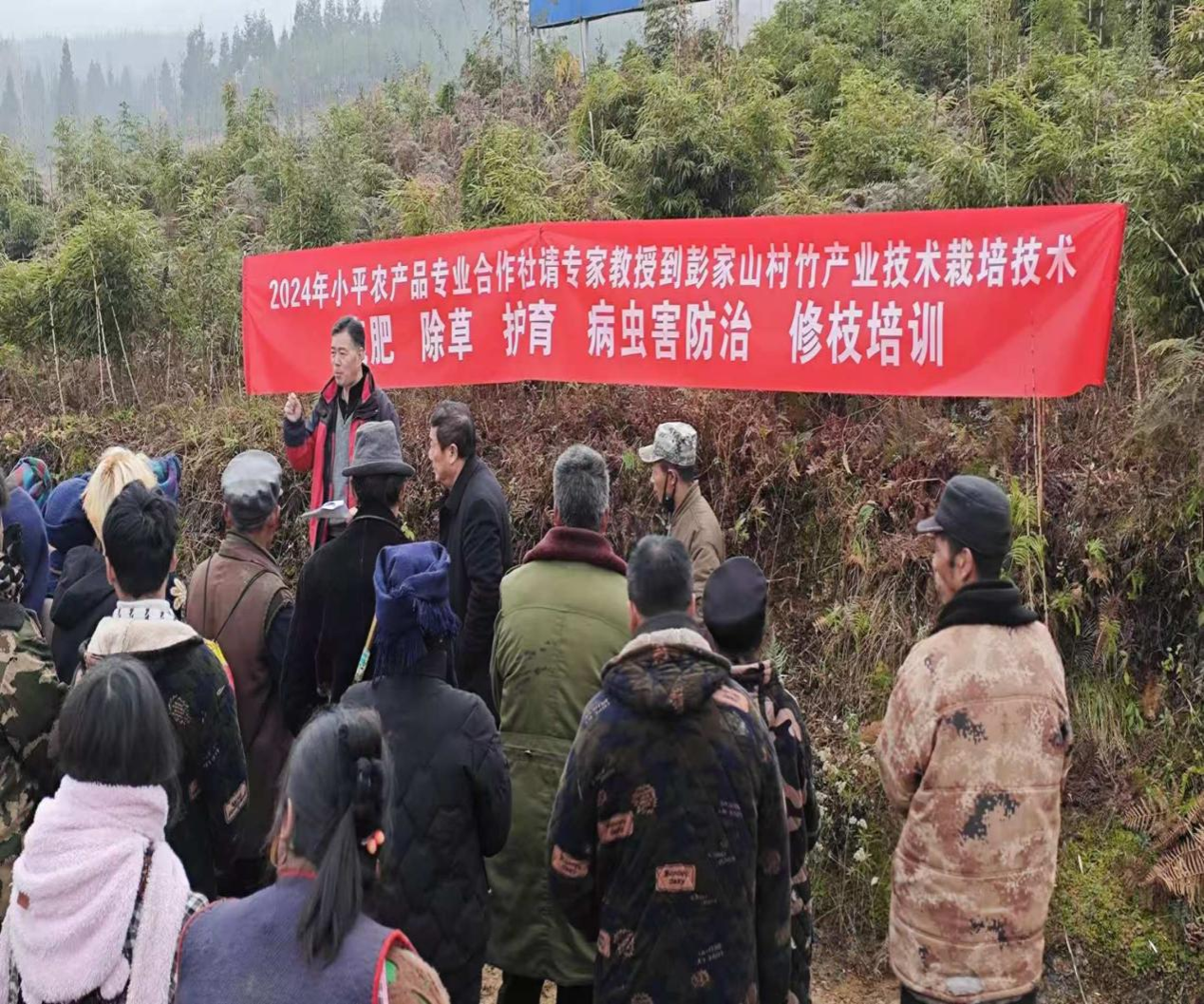 12月8日上午,范川教授在杉树村围绕筇竹种植的综合管理为20余名竹农详细讲解了除草、抗旱和病虫害处理等技术要点,强调了竹蝗、竹螟等害虫早期预防和综合防治的重要性,介绍了物理防治、生物防治和化学防治等多种方法,建议村民采用诱捕器和生物农药,减少对环境的影响,同时他分享了抗旱保水的土壤管理技术。