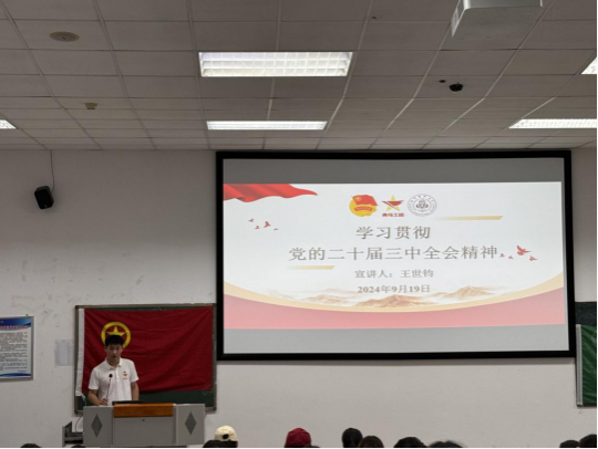 校第十一期青马班学员王世钧现场领学党的二十届三中全会精神,深入宣讲习近平总书记龙8-long8(头号玩家)国际唯一官方网站全面深化改革的一系列新思想、新观点,引导广大团员青年深刻学习领会全会精神,奋力书写中国式现代化的青春篇章。