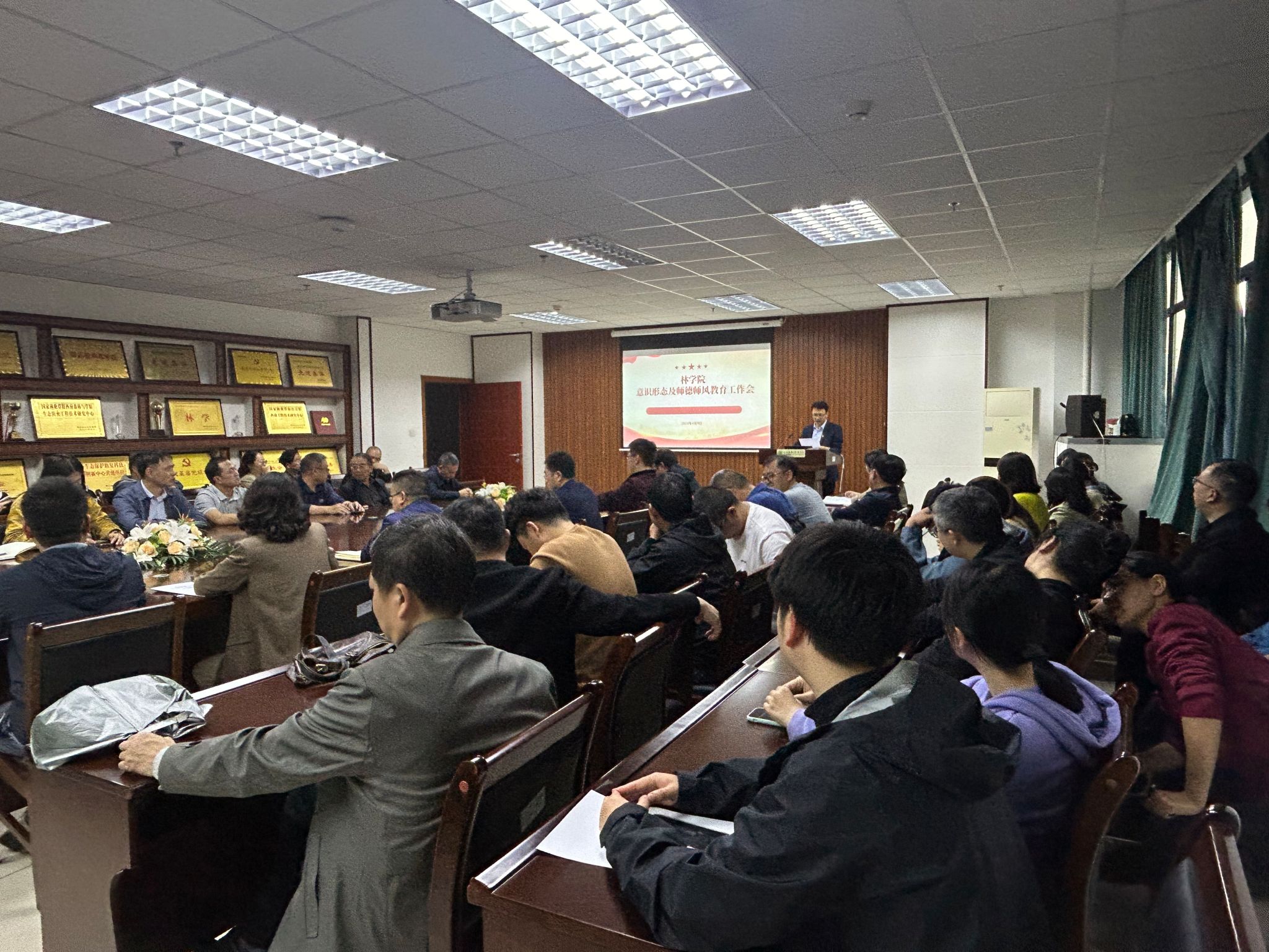 学院党委书记胡迅在会上强调新时代意识形态工作的重要性,指出意识形态工作是高校教育工作的重要组成部分,并结合近期学术报告、教材编用等出现案例,对全院教职工提出了明确要求。他表示,学术研究无禁区,课堂讲授有纪律,全院职工要全体一心,全院教职工要齐心协力,共同抓好意识形态工作。