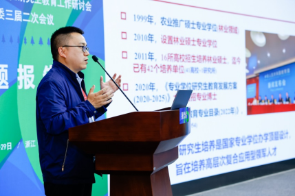 国务院学学位委员会林学学科评议组成员、我院刘应高教授,全国林业专业学位研究生教育指导委员会委员、我院副院长谭波教授参加了本次会议。谭波代表我校林业硕士授权点作了“双一流背景下的林业博士专业学位研究生课程体系建设与思考”的主题报告。报告结合教指委教育教改项目介绍了林业博士课程体系构建的背景需求、工作思路、领域(方向)设置、核心课程框架等内容,并结合国内外林业博士与林业硕士培养单位课程体系设置,探讨了面向国家战略需求的林业行业领军人才培养模式与授课方式。