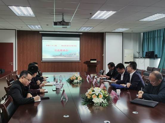 胡迅代表学院表达了对刘玉柱一行来访的热烈欢迎,他表示中铁二十三局是优质单位,欢迎来我院选用人才。随后,徐振锋向来宾介绍了学院基本情况,并详细介绍了学院与德昌县的人才培养模式以及洪雅林场的合作模式。