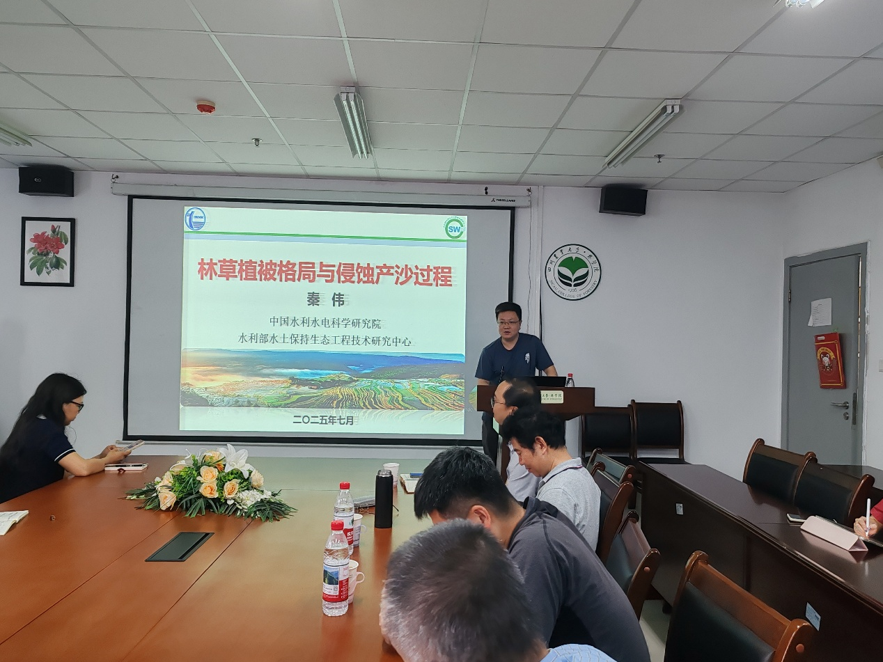 报告中,周金星教授针对西南困难立地条件下石漠化生态修复问题,讲述了困难立地条件研究的背景,以及喀斯特植被对极端复合干旱的响应机制等内容;秦伟教授级高工则对当前小流域侵蚀产沙模型因子优化及植被格局与侵蚀关系等内容展开讲授。